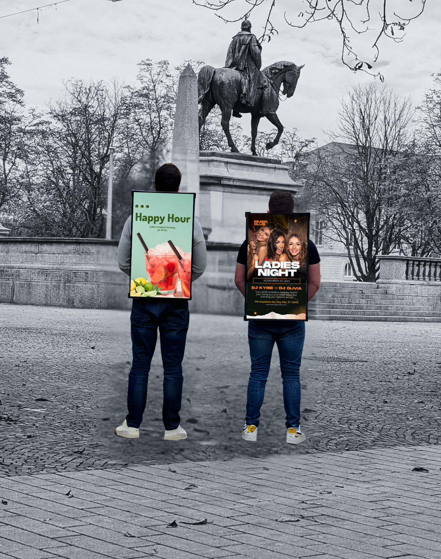 Walking Screen bietet Dir die einzigartige Möglichkeit, Deine lokale Präsenz zu stärken und dadurch Deinen Umsatz zu steigern. Wir bringen Deine Botschaft direkt zu Deinen potenziellen Kunden, wo immer sie sich gerade in der Innenstadt aufhalten.