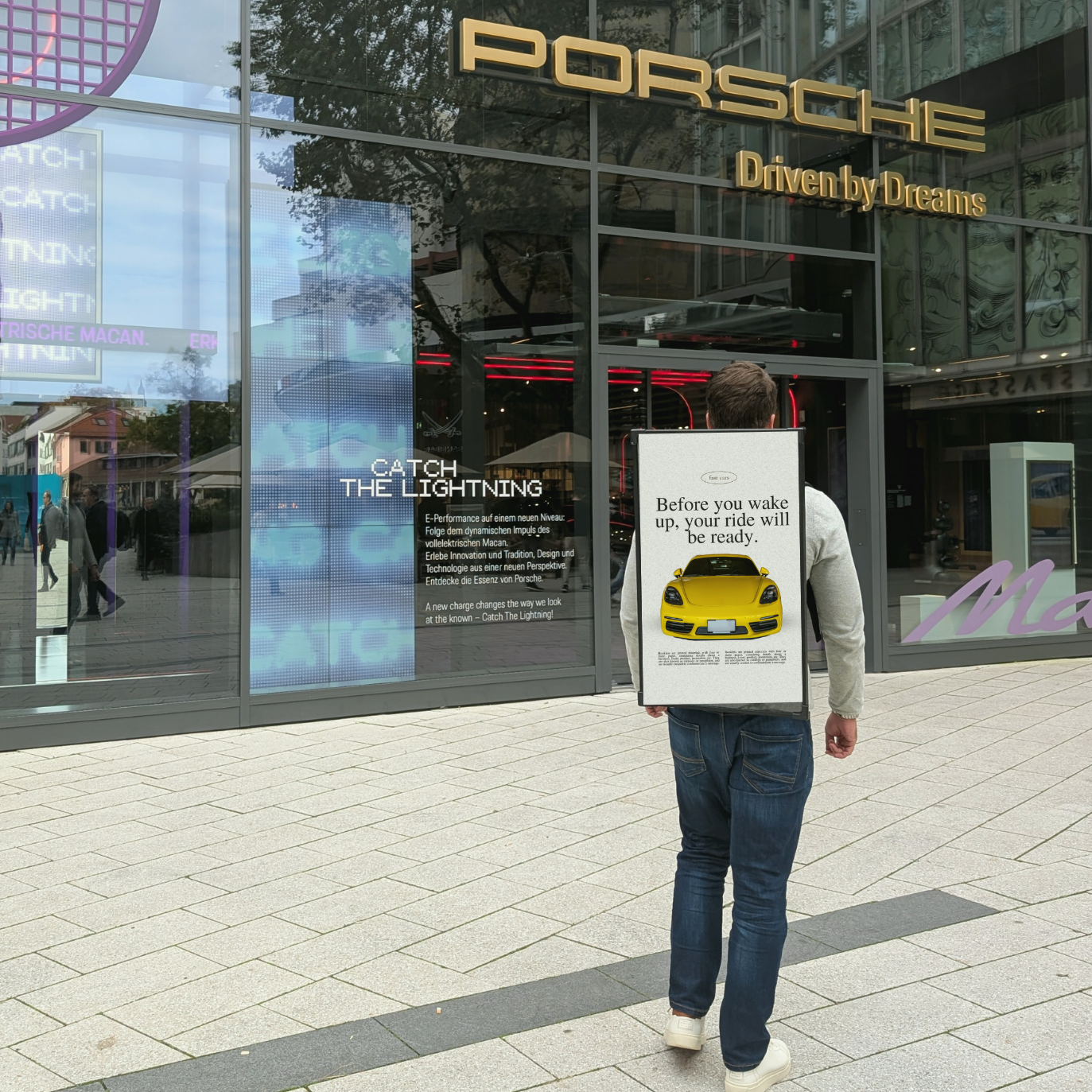 Das Exklusive Paket bietet die umfassendste Lösung: Bsp 12 Stunden Laufzeit, 6 Walker, Premium-Displays mit interaktiven Elementen und die Option, Goodies zu verteilen. Zusätzlich wird die Route getrackt, um die Kampagnenleistung genau zu analysieren. Besonders herausragend ist, dass wir den Content gemeinsam mit Dir erstellen. Ideal für große Kampagnen, bei denen maximale Sichtbarkeit, professionelle Inhalte und direkte Kundeninteraktion im Vordergrund stehen.